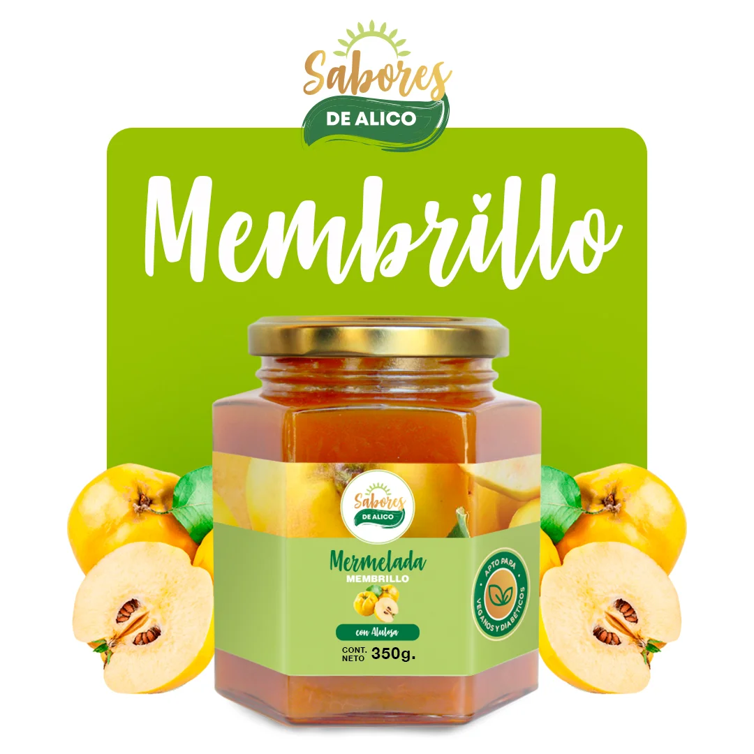 Mermelada de Membrillo con Alulosa. Producto 100% natural, libre de azúcar añadida.